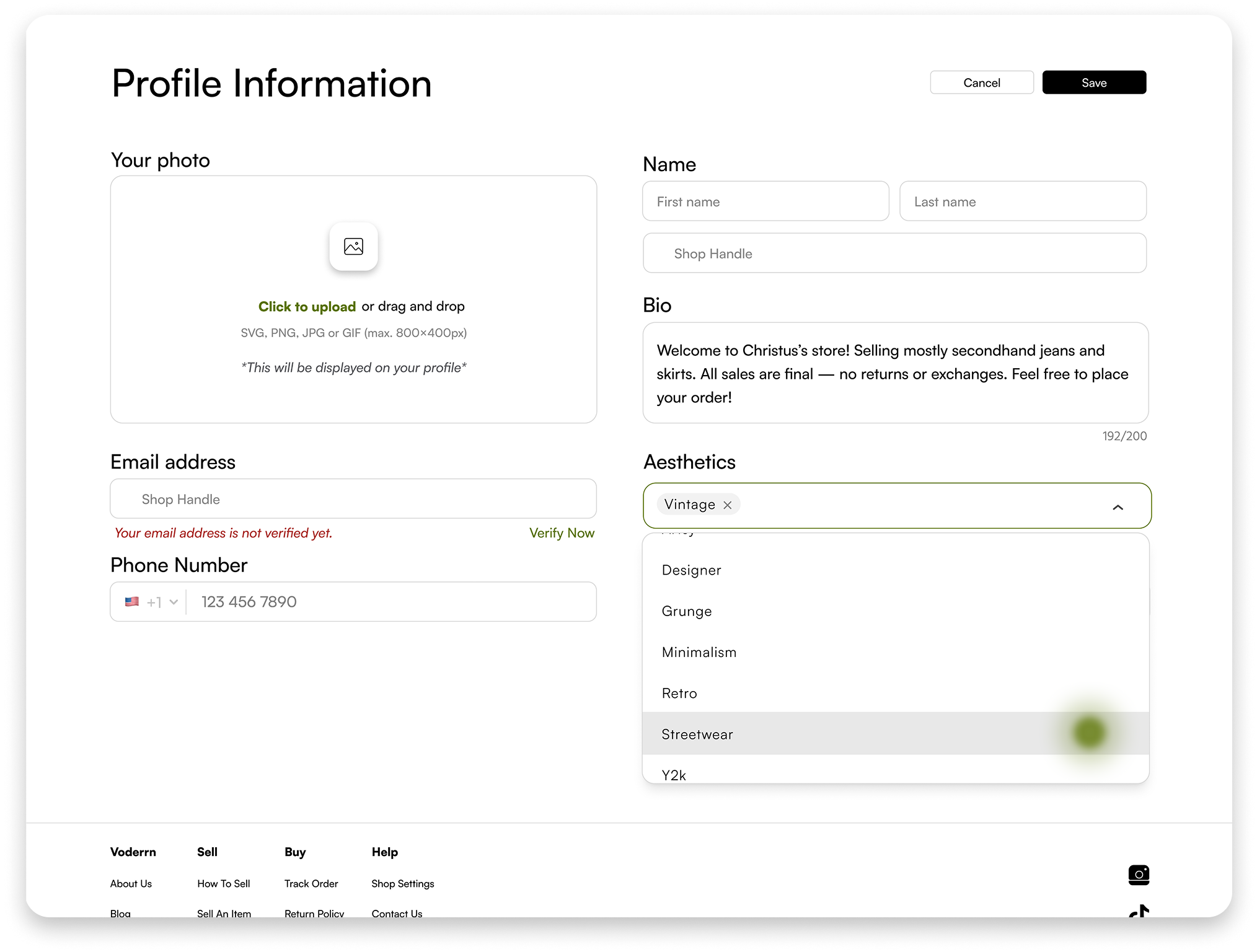 As the UX Designer at Voderrn, a second-hand fashion startup empowering users to build personalized wardrobes and exchange pre-loved clothing, I led the end-to-end design of the website—focusing on the landing, settings, and profile pages to create an intuitive, user-centered experience.
